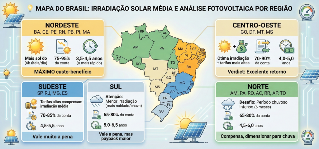 ✅ Mora em região com boa incidência solar